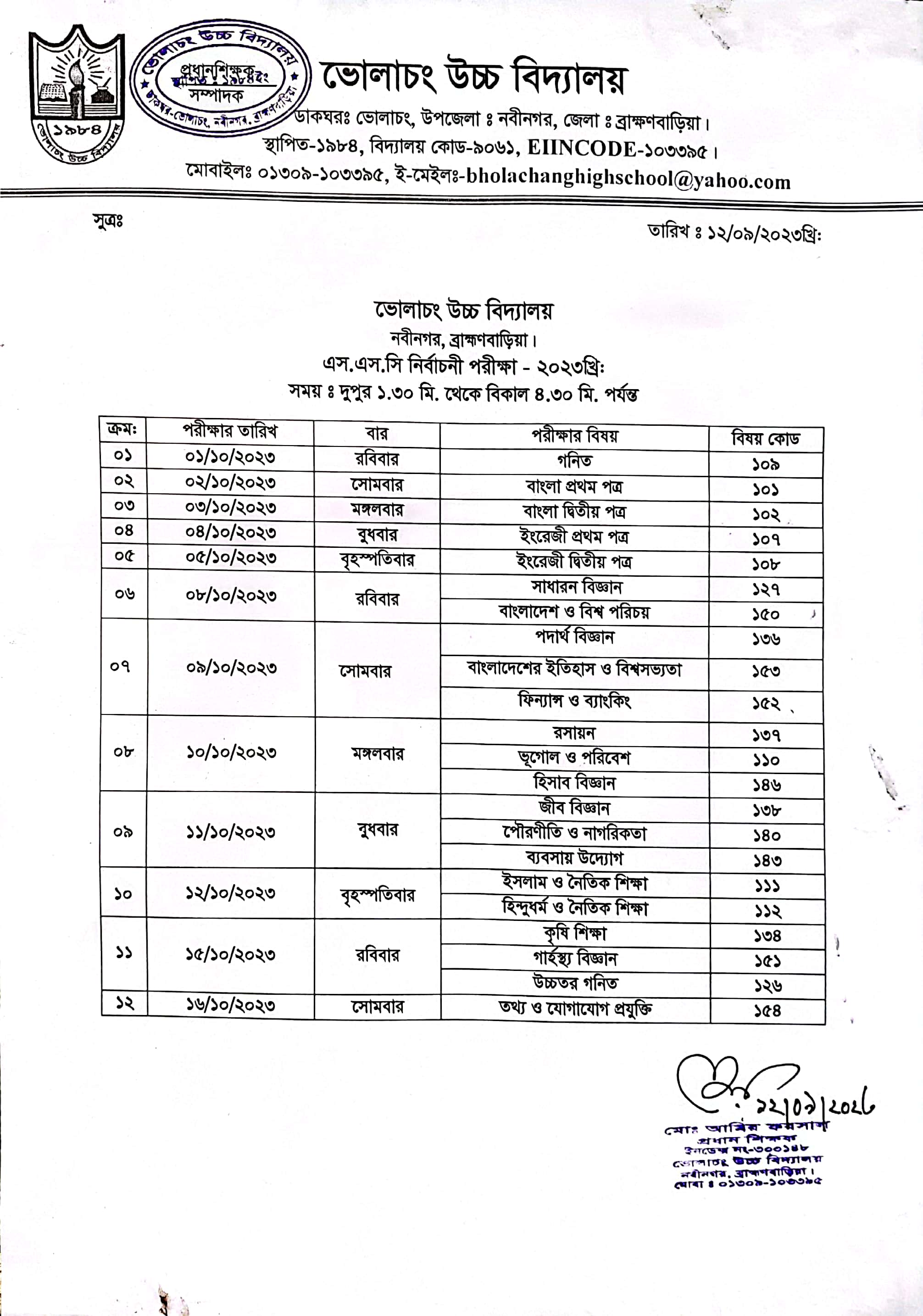 | Sep 12, 2023 | দশম শ্রেণির নির্বাচনী পরীক্ষার রুটিন। |