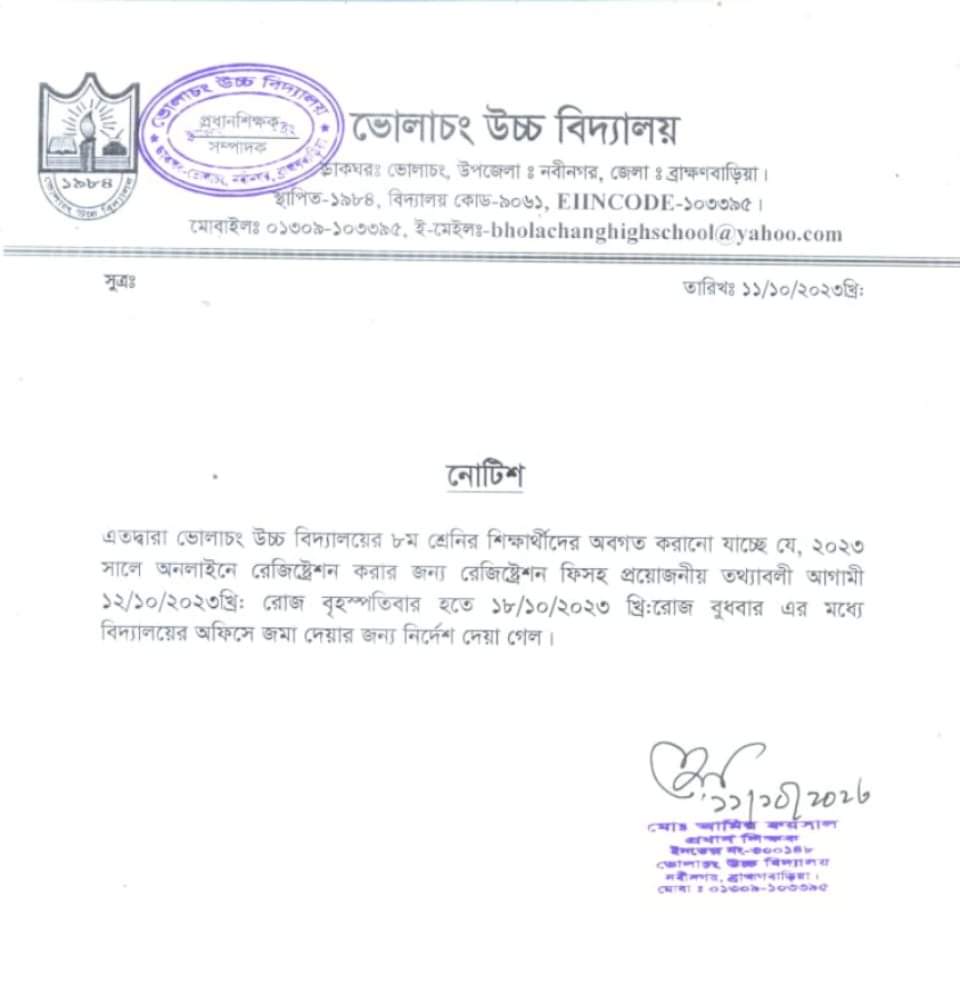 | Oct 11, 2023 | নোটিশ: ৮ম শ্রেণির রেজিস্ট্রেশন কার্যক্রম | |
